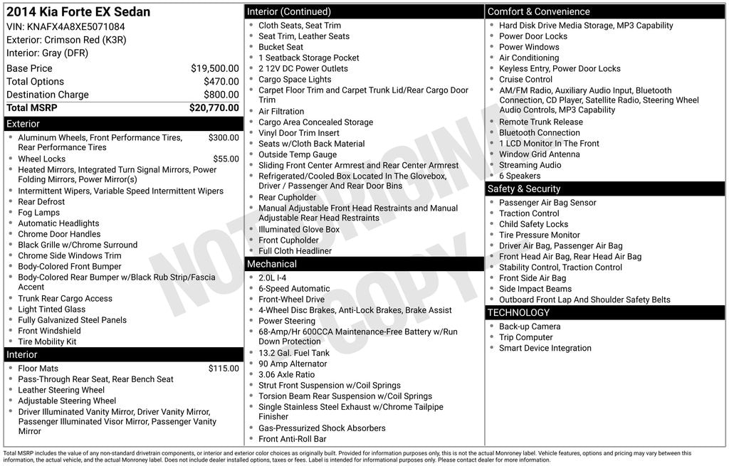 The Forte EX also comes equipped with a comprehensive suite of safety features, including Brake Assist, Electronic Stability Control, and Traction Control, giving you added peace of mind on the road.